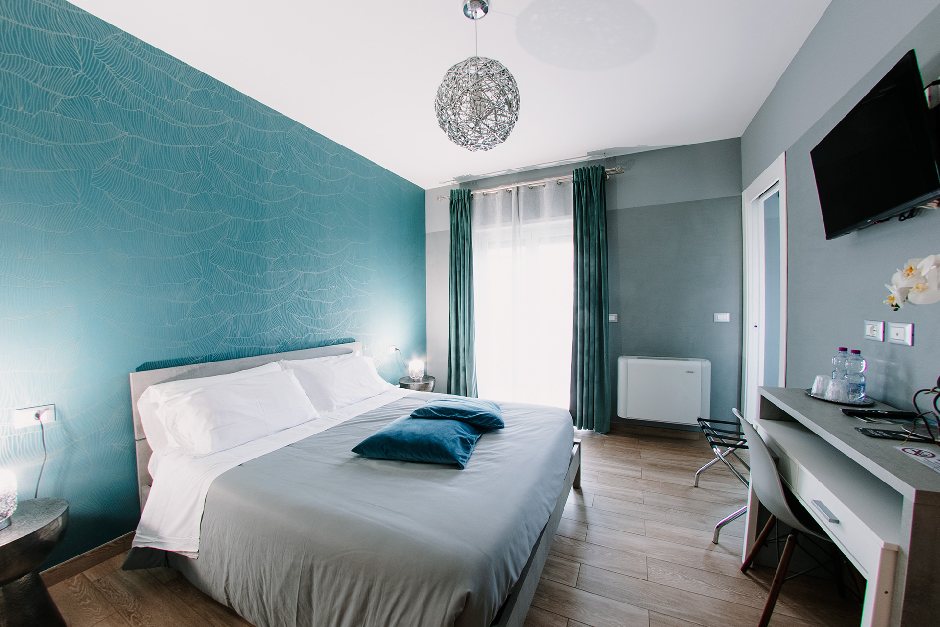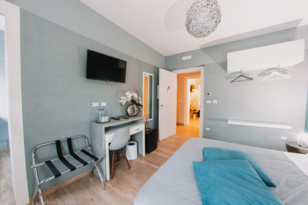 Ampia e luminosa, la Camera Banano è pensata per chi cerca comfort e praticità senza rinunciare al calore dell’ospitalità. La carta da parati botanica richiama la natura e dona carattere all’ambiente, mentre il legno e le tonalità neutre contribuiscono a un’atmosfera equilibrata e accogliente.