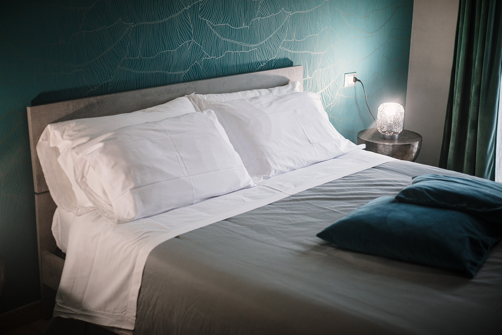 Il letto matrimoniale garantisce riposo e tranquillità, in uno spazio silenzioso e curato nei dettagli.